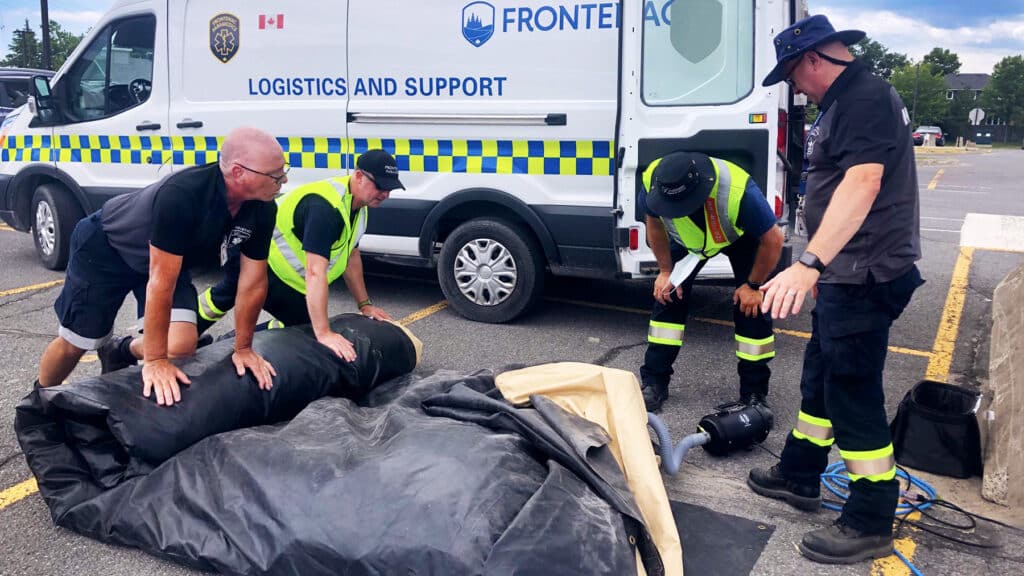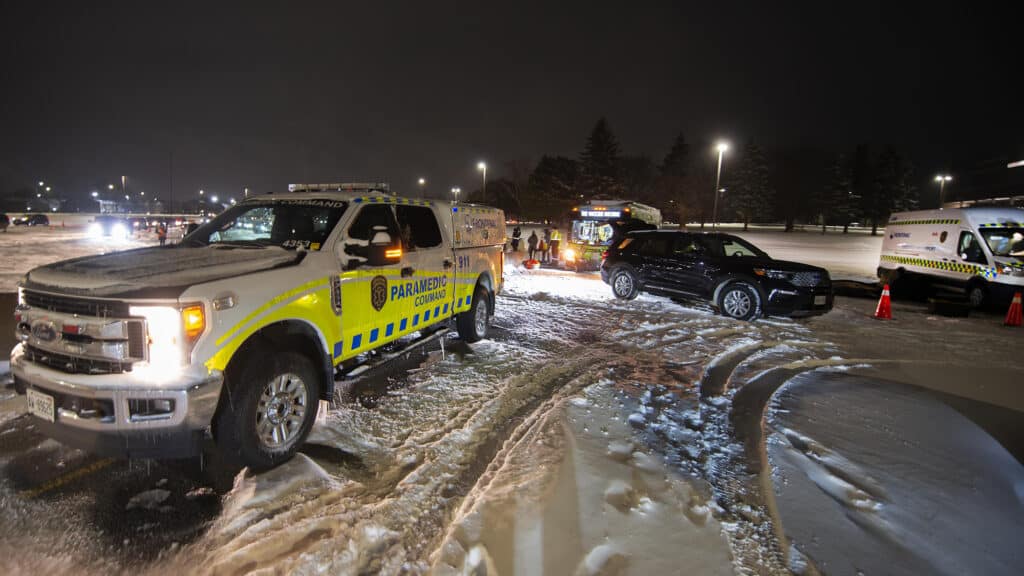 Frontenac Paramedic Services have a fleet of 19 ambulances (14 on duty at peak times), which are 23′ long, 100″ high, 112″ wide and weigh 13,000 lbs. loaded. Thirteen of them are in service at peak times. Most of our vehicles are equipped with ECO-Run monitoring systems in part to reduce carbon emissions.