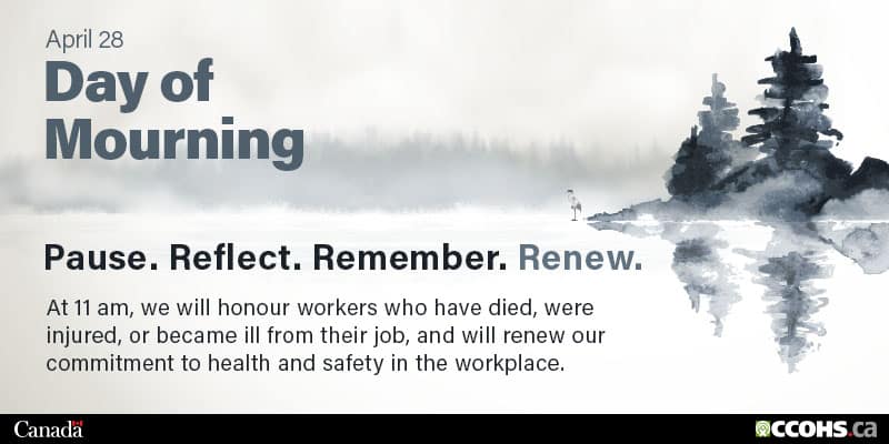 Whereas the National Day of Mourning was officially recognized by the federal government in 1991, and originally launched by the Canadian Labour Congress in 1984. Together on this day we strive, along with employers and unions across Canada, to prevent workplace deaths, illnesses and injuries; and,