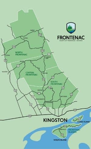 The southern border of Frontenac County is about 20 minutes north of Highway 401, and is accessed by Road 38 (Exit 611), Sydenham Road (Exit 613), Perth Road (Exit 617) and Battersea Road (Exit 619).